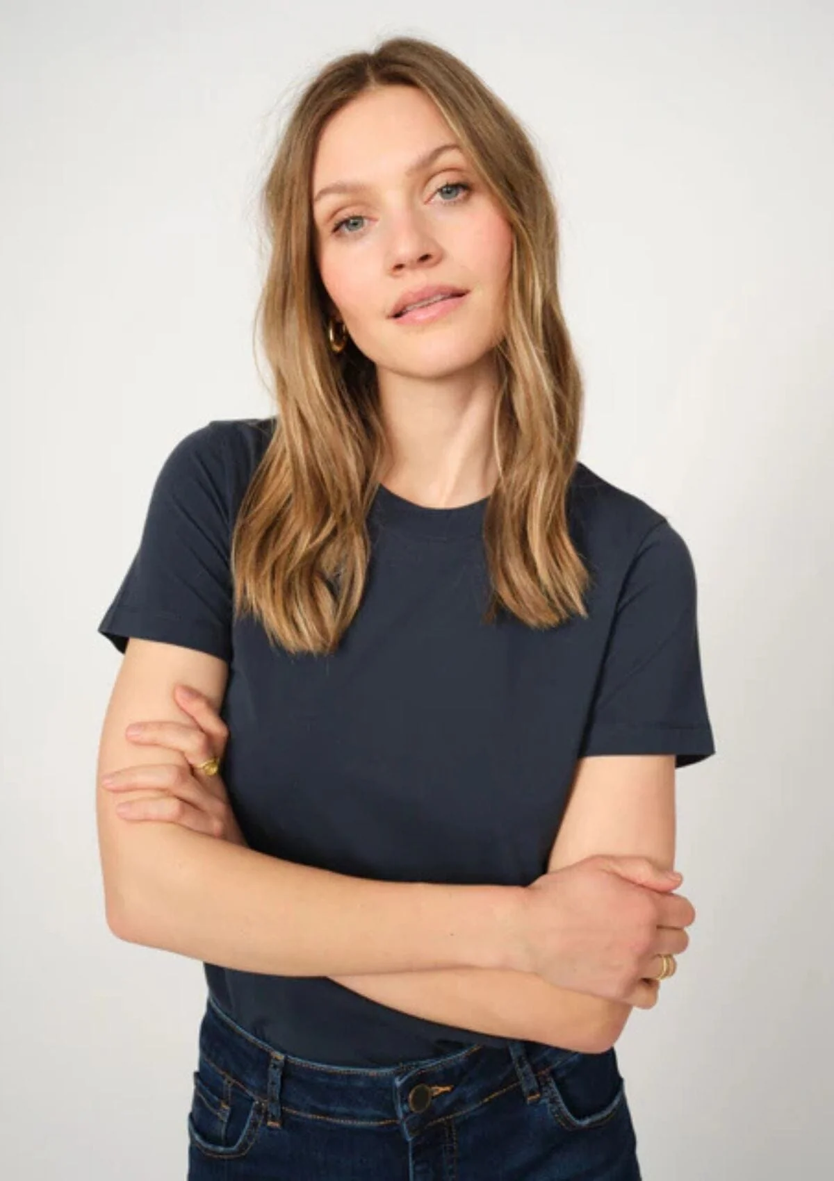 This regular fitted tee is your new wardrobe basic. Crafted from a smooth modal blend. Designed with round neck, signature coin button on the hem and brand lettering at back. This goes with anything.