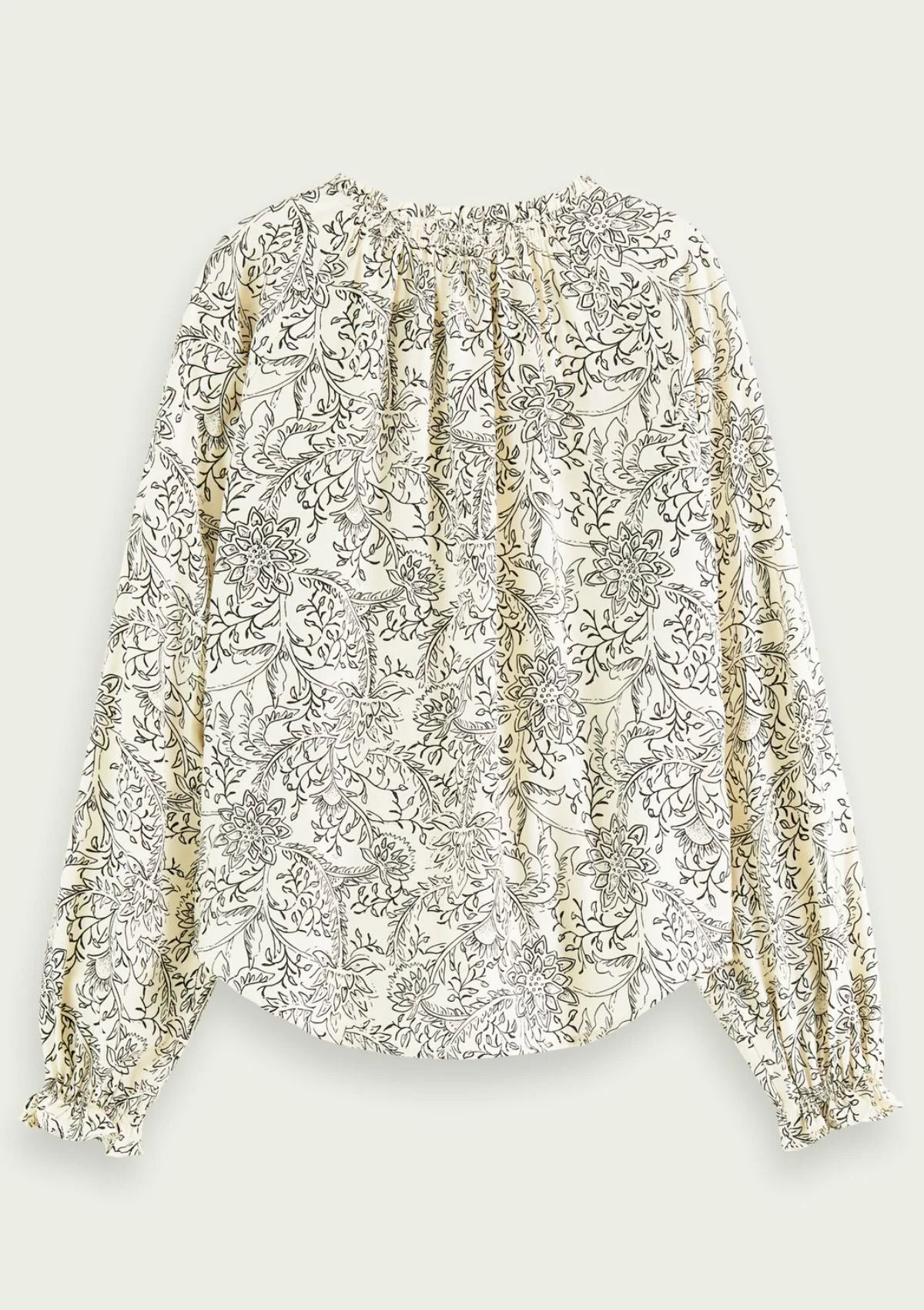 Scotch's latest long-sleeve shirt is a perfect addition to any collection, with the versatility to be easily dressed up or down. With smock detailing along the cuffs and collar, a drawstring closure ties the collar together, alluding to a keyhole effect. Untie at the collar to reinvent your look with a deep V-Neck.