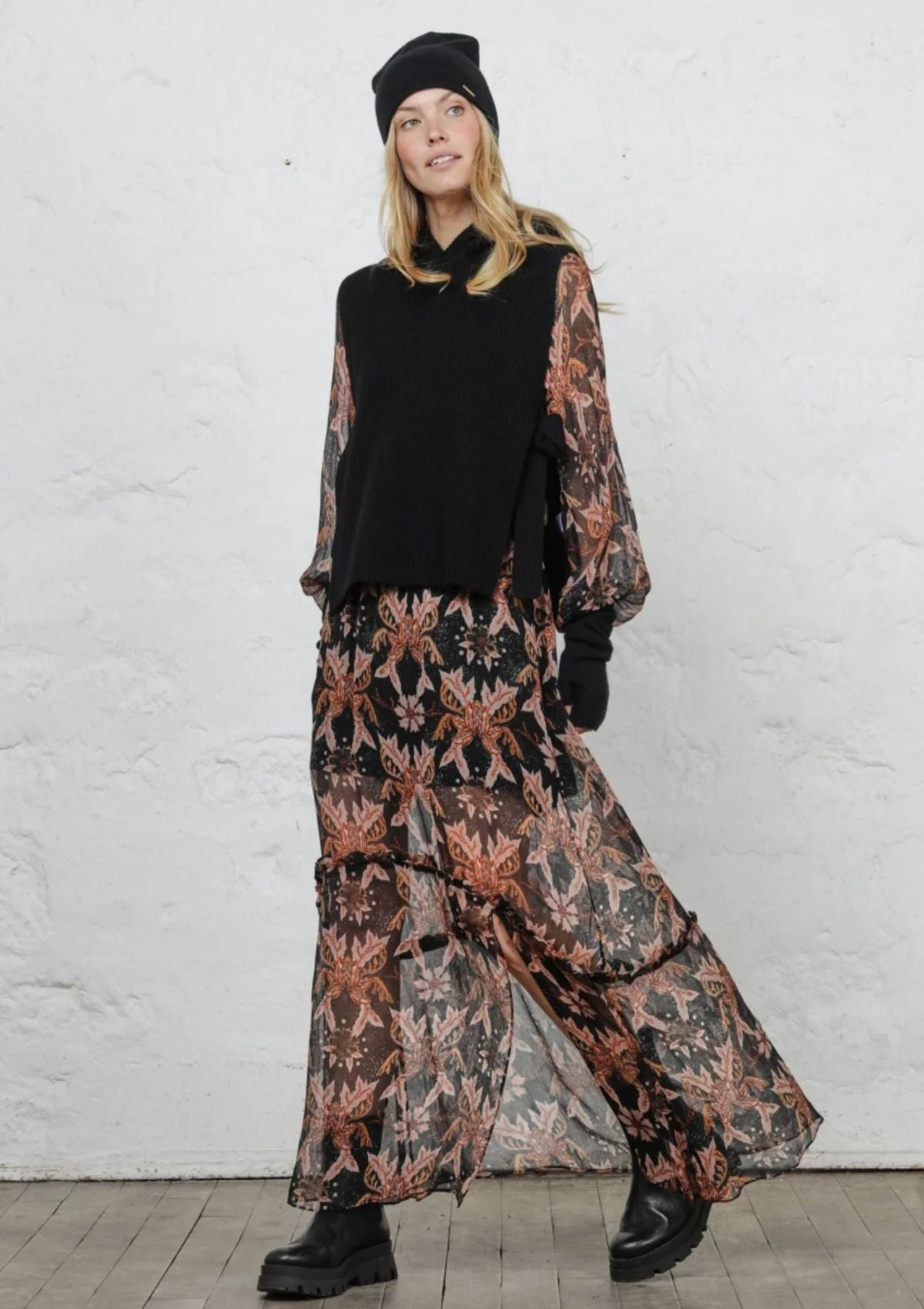 This season's must-have, the ruffled dress RAMINA by BERENICE never ceases to amaze. With its maxi style and floral print in warm tones, this dress combines a trendy and bohemian look. To associate with a pair of boots or heels for a slightly more chic spirit.