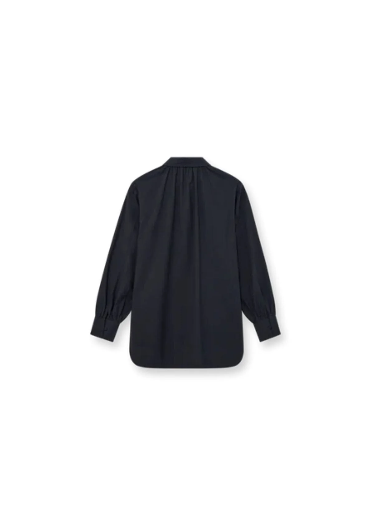 Super soft shirt with a relaxed shape and garment-washed finish. Feminine pleats and a rounded collar bring softness to the structured feel. Curved side slits and buttoned cuffs finish the look.