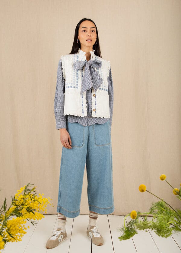 A simple, relaxed boxy shirt with a feminine twist, in a cotton mini-gingham.