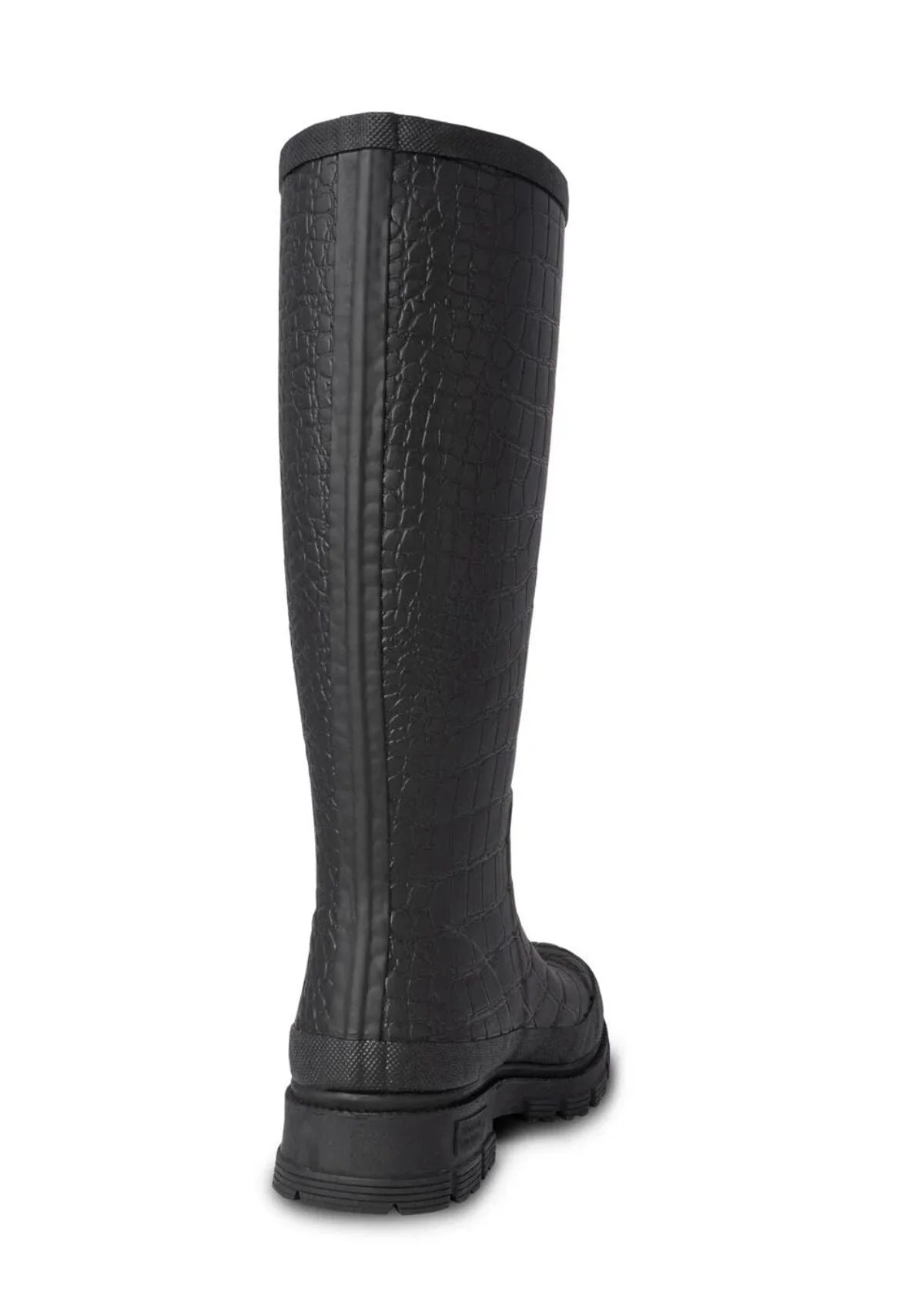 Introducing Le Croco, a high waterproof boot made in a cool black crocodile print. Crafted with FSC-certified rubber, this waterproof piece seamlessly blends style and functionality. Elevate your wardrobe with a versatile choice for any weather.