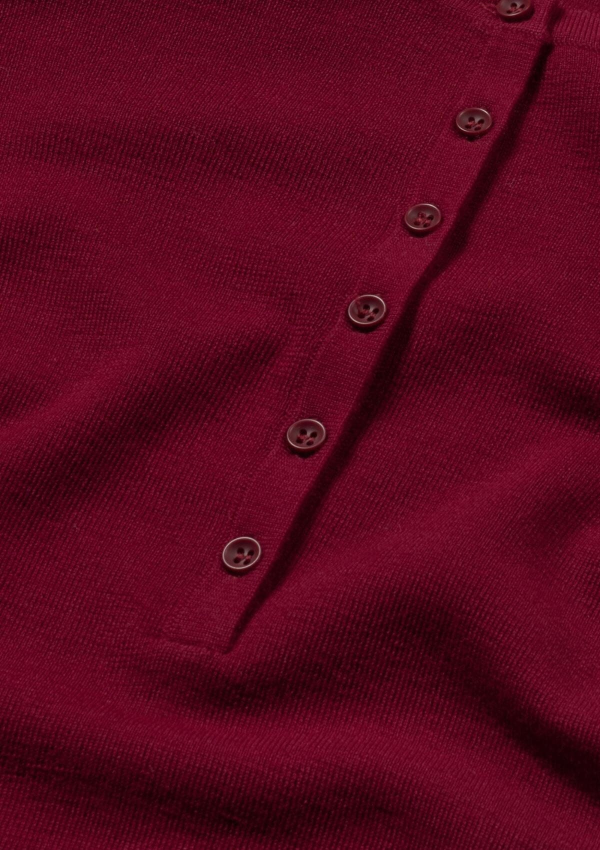Fine knit sweater. Wool and silk blend fabric, soft to the touch. Round neck with buttons. Long sleeves. Slim fit. Garment length for size S: 56 cm.